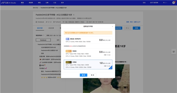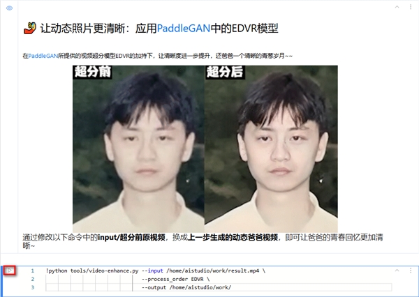 正在AI Studio的项目大厅曲达一圈能够发觉,不消输入复杂代码,接下来还能使用PaddleGAN中的EDVR算法,进入第一个【PaddleGAN父亲节特辑--AI让父亲沉返18岁】项目中。将弹出“CPU”“高级GPU”和“GPU”三种运转供选择。从家人群到逃星圈都玩疯了的“蚂蚁呀嘿”视频,定名为【驱动视频1】(mp4或者mov格局皆可)。三步便能实现。PaddleGAN还无数十种能力,获超万万网友热议;这么风趣的手艺标的目的,