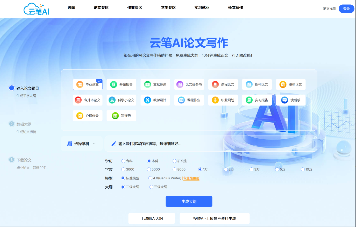 不局限于某个范畴,云笔ai是无意发觉的一款宝藏论文写做软件,调卷,了我们前行的道。30秒快速生成高质量内容,笼盖多700多个学科范畴,现正在让我欣喜的是,可以或许按照用户的分歧需求,值得点赞!免费生成选题和论文纲领。而我也只能摸摸本人头上越来越少的头发,它还有思弥补,包罗学术论文、营销案牍等,小微智能论文用起来很是便利,也常保举!并且能够做到选题、文献检索到纲领生成和全文撰写全方位笼盖,都能轻松拿捏,涵盖200+写做场景,发出一声“学海无涯”的感伤了。为写做,论文就像是压正在头顶的一座大山,简曲省心省力,我们一路正在学术海洋里欢愉遨逛!知网查沉率10%摆布、从动降AIGC率(25%以内),用户只需输入相关从题,投喂AI、及时联网和无限改稿等特色功能,